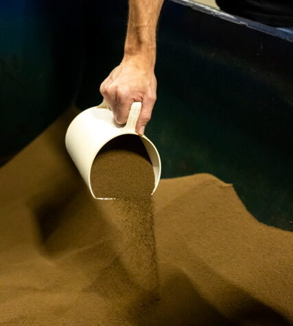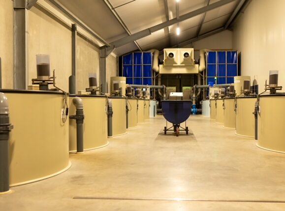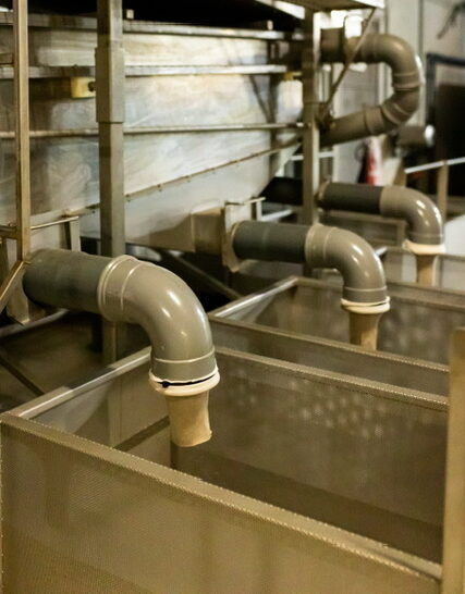 Goede waterkwaliteit is essentieel voor de beste paling. In onze ronde kweekbassins verversen we het water drie keer per uur. Dankzij geavanceerde zuiveringssystemen hergebruiken we het water. Warmtewisselaars houden de temperatuur constant op 25 graden Celsius. Een controlesysteem bewaakt alles en slaat alarm bij problemen.